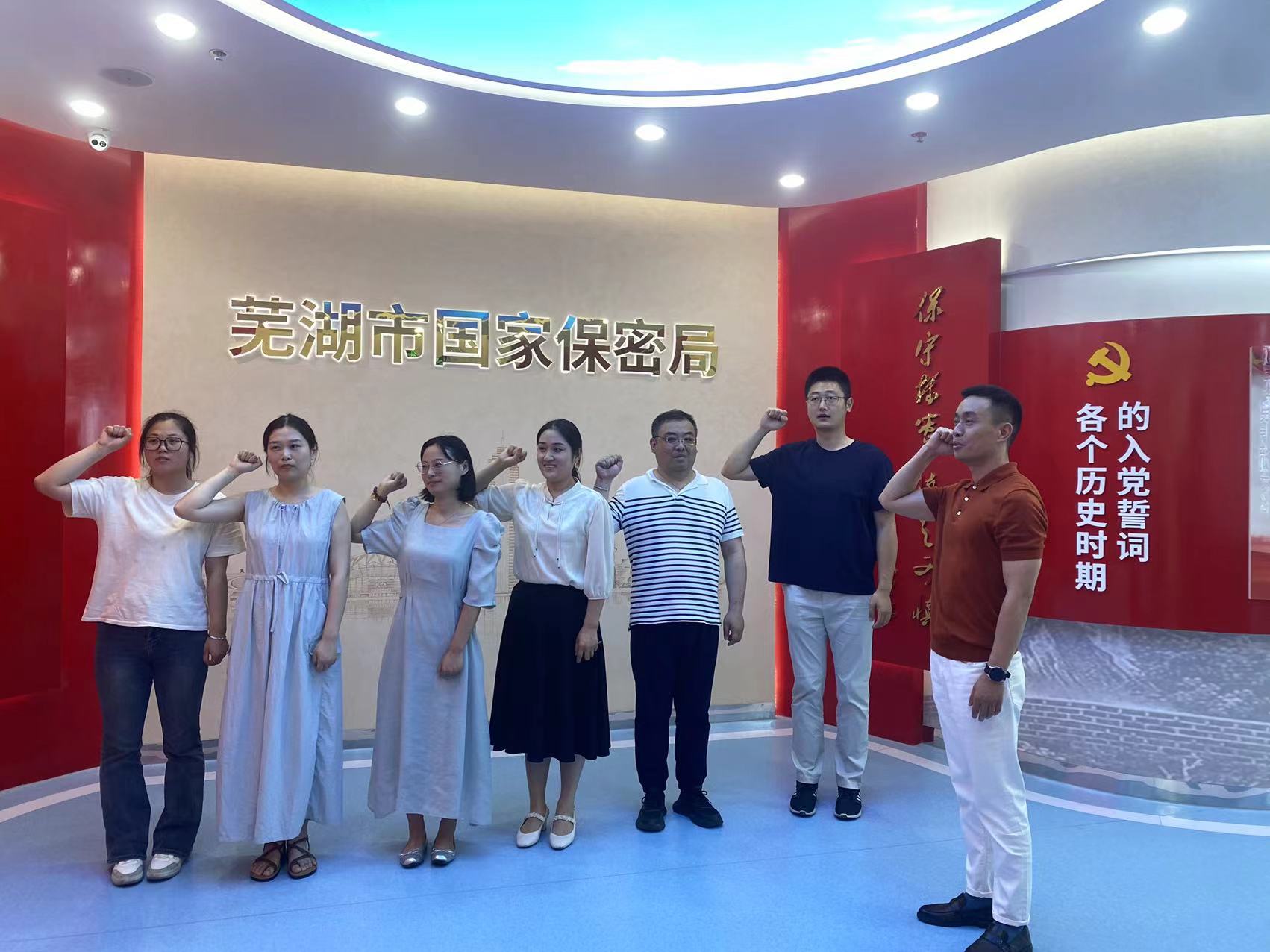 2024年是中国共产党成立103周年,革命薪火永相传,为不断增强党员的凝聚力和战斗力,发挥好党员的先锋模范作用。6月11日下午,安徽bbin宝盈信息技术有限公司的全体党员以及部分保密人员,前往芜湖市国家保密局,开展了“迎七?一走进芜湖市保密教育基地”主题党日活动。